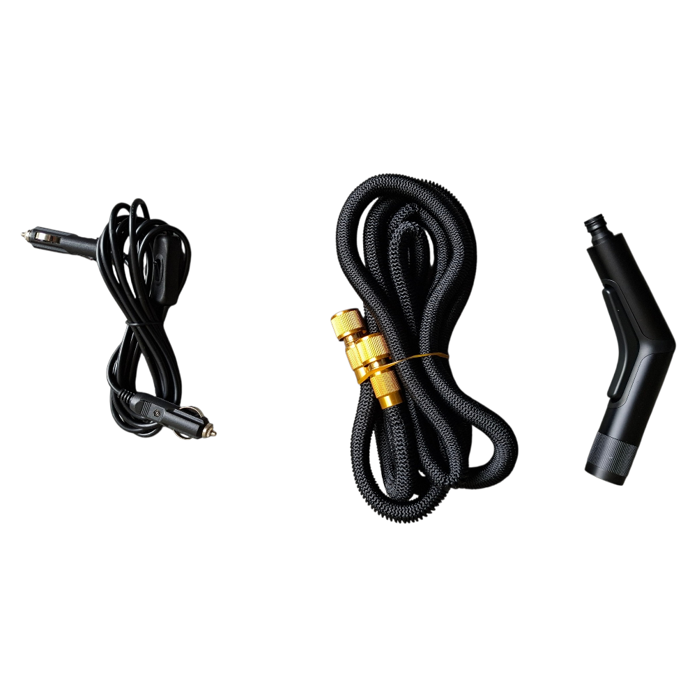 Este tanque de agua de 30 litros combina funcionalidad y diseño aerodinámico. Fabricado en plástico de alta resistencia color negro, está diseñado específicamente para ser montado en parrillas de techo (roof racks) o laterales de vehículos, ideal para expediciones, camping y aventuras off-road, . La manguera de espiral flexible tiene accesorios de conexión rápida que le permiten utilizar ducha portátil incluida, bomba de 12 V produce un máximo flujo de agua de 4 litros por minuto, que se conecta rápidamente a la toma del encendedor de cigarrillos de 12 V CC del vehículo.